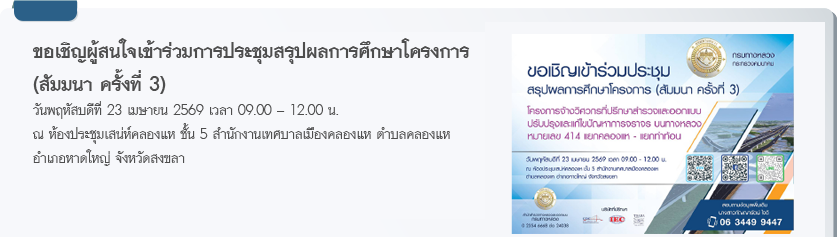 ทางหลวงหมายเลข 414 แยกคลองแห - แยกท่าท้อน เป็นเส้นทางที่ใช้เลี่ยงเมืองหาดใหญ่แทนถนนกาญจนวนิช ปัจจุบันทางหลวงดังกล่าวเกิดปัญหาการจราจรติดขัด ซึ่งทำให้เกิดความล่าช้าในการเดินทาง โดยเฉพาะชั่วโมงเร่งด่วน เนื่องจากทั้งสองฝั่งของโครงการเป็นชุมชนหน่าแน่น โดยมีทั้งสถานที่สำคัญทางธุรกิจและสถานที่ท่องเที่ยวที่สำคัญ ดังนั้นจึงจำเป็นต้องสำรวจและออกแบบปรับปรุงและแก้ไขปัญหาการจราจรบนทางหลวงหมายเลข 414 แยกคลองแห แยกท่าท้อน และเครือข่ายทางหลวงใกล้เคียงซึ่งจะทำให้เดินทางได้สะดวก รวดเร็ว และมีความปลอดภัยมากขึ้น อย่างไรก็ตาม จากการตรวจสอบพื้นที่โครงการเบื้องต้น พบแหล่งโบราณสถานที่ยังไม่ขึ้นทะเบียนอยู่ในระยะ 1 กิโลเมตร จำนวน 1 แห่ง คือ วัดท่าแซ จึงเข้าข่ายต้องจัดทำรายงานการประเมินผลกระทบสิ่งแวดล้อม (EIA) ตามท้ายประกาศกระทรวงทรัพยากรธรรมชาติและสิ่งแวดล้อม เรื่อง การกำหนดโครงการ กิจการ หรือการดำเนินการ ซึ่งต้องจัดทำรายงานการประเมินผลกระทบสิ่งแวดล้อม และหลักเกณฑ์ วิธีการ และเงื่อนไขในการจัดทำการประเมินผลกระทบสิ่งแวดล้อม พ.ศ.2566 ประกาศในราชกิจจานุเบกษา เล่มที่ 141 ตอนพิเศษ 4ง วันที่ 5 มกราคม 2567 |