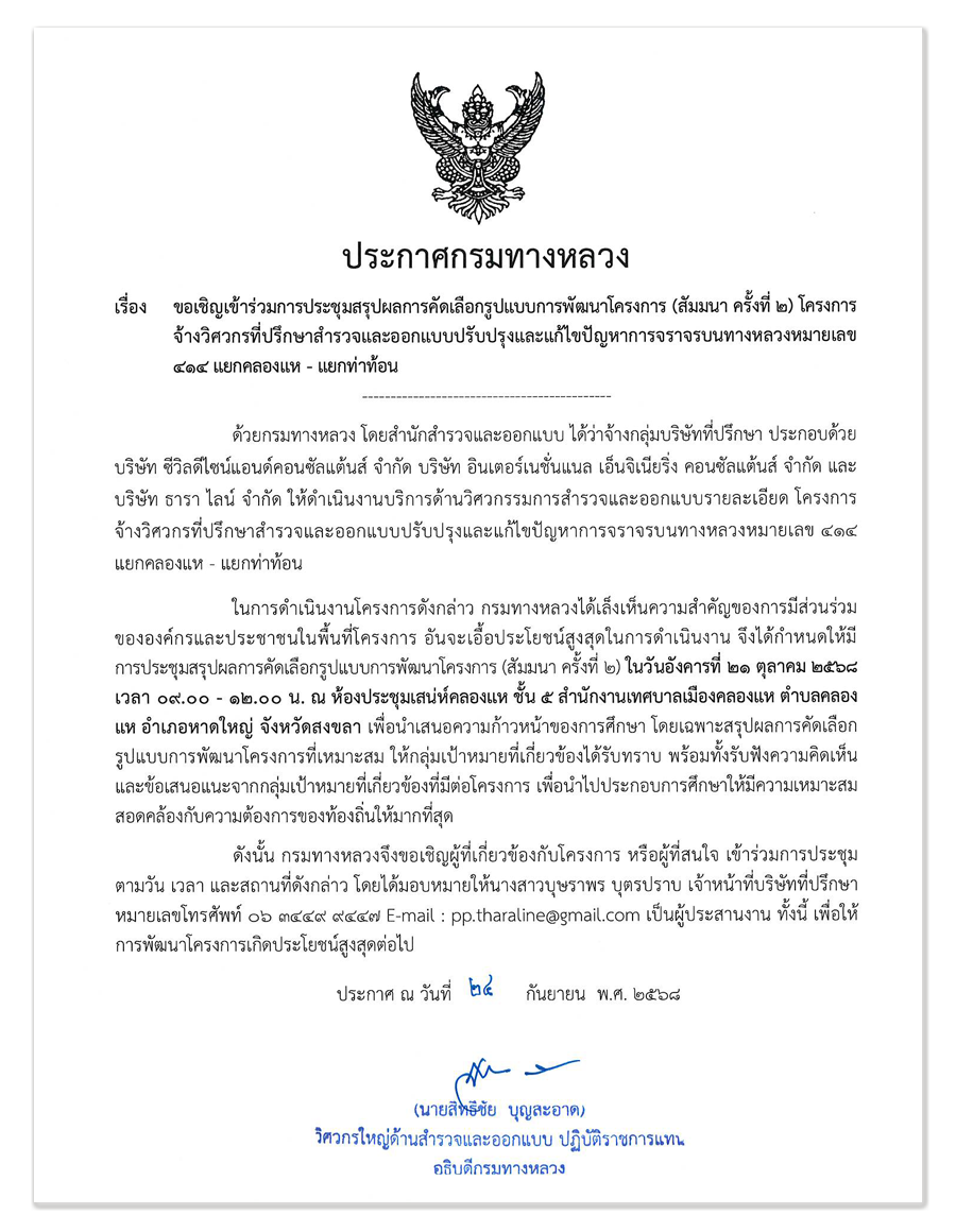 รายละเอียดดังประกาศกรมทางหลวง ฯ